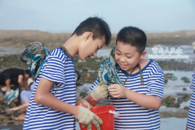 努力找寻螃蟹的孩子们身影
